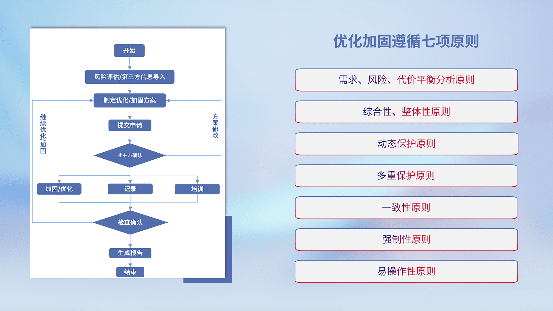 最大程度利用现有资产,,对评估发现的问题进行封堵与整改,,防止漏洞被利用,,,,提升整体网络安全性,,为客户带来高标准的优化加固服务。。。