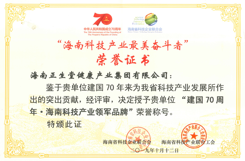 “海南省酒店与餐饮行业最美奋斗者”荣誉证书