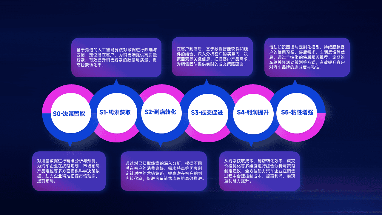 通过拓宽潜在客户来源、、优化线索分配并提高到店转化率,,,以增强销售效率。。。。同时,,,,利用线索数据不断优化分析模型,,,,有效提升转化率,,,,扩大营销影响力。。。。